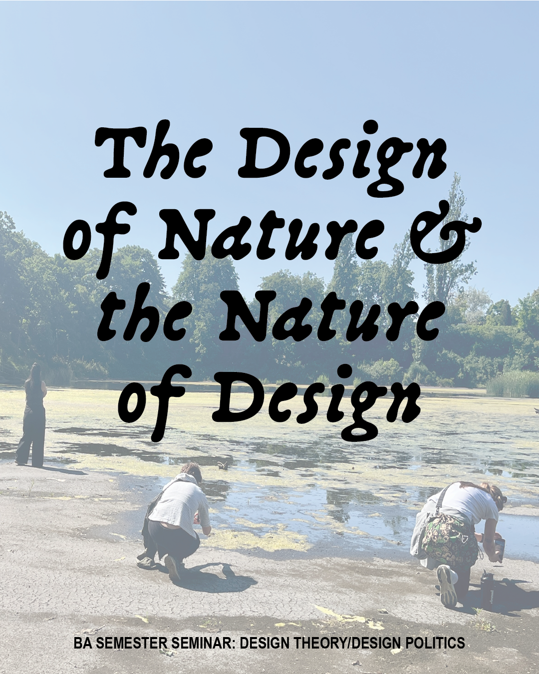 What do we mean when we talk about nature? Is it something separate from humans, or is that very distinction itself a product of design? And, what is design, really? Is it something only humans do or a broader process that shapes us back? In this seminar, we’ll dive into these questions by examining the historical conditions and underlying logics that continue to shape prevailing notions of design, nature, and their relation until today. We’ll trace how design developed alongside modern practices that framed nature as a resource to be exploited and transformed through technology. At the same time, we’ll challenge this legacy by considering alternative approaches that honour local, non-exploitative ways of engaging with the natural world.